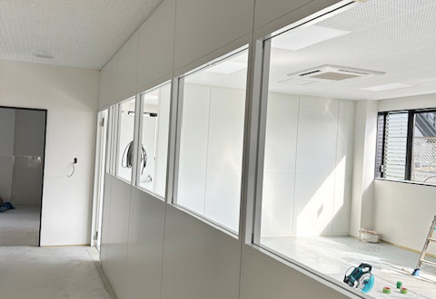 オフィス・テナントパーティションとは、オフィスや店舗、病院、公共施設などに設置される仕切りのことです。施設内観の印象を左右する重要な部分ですのでしっかりとイメージを共有して施工致します。
